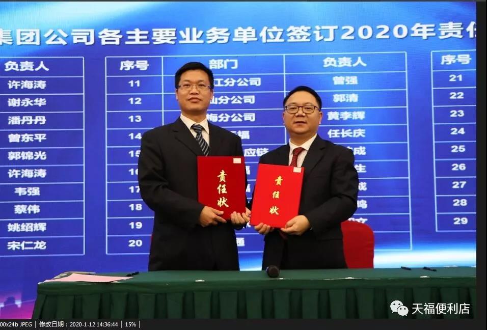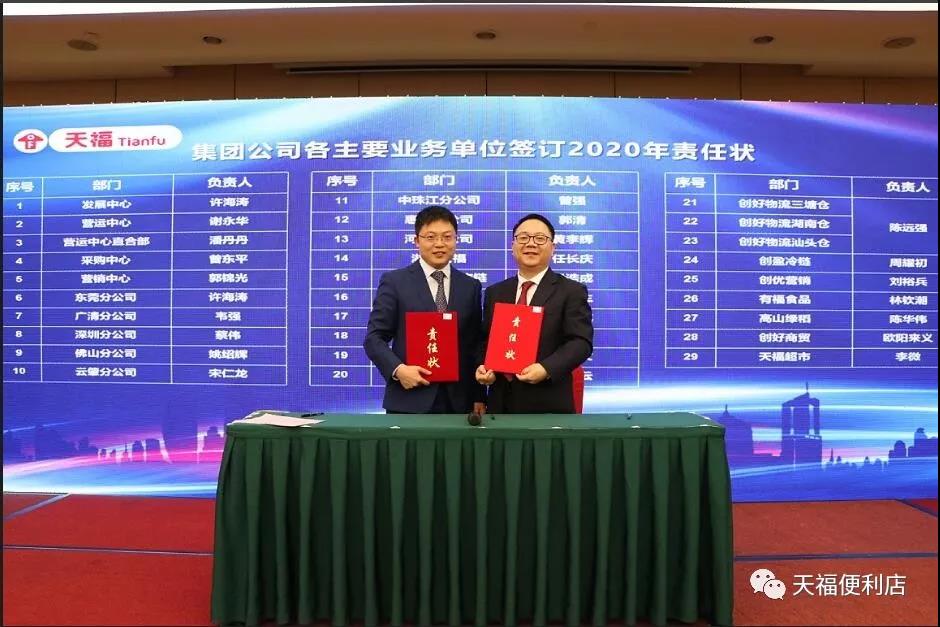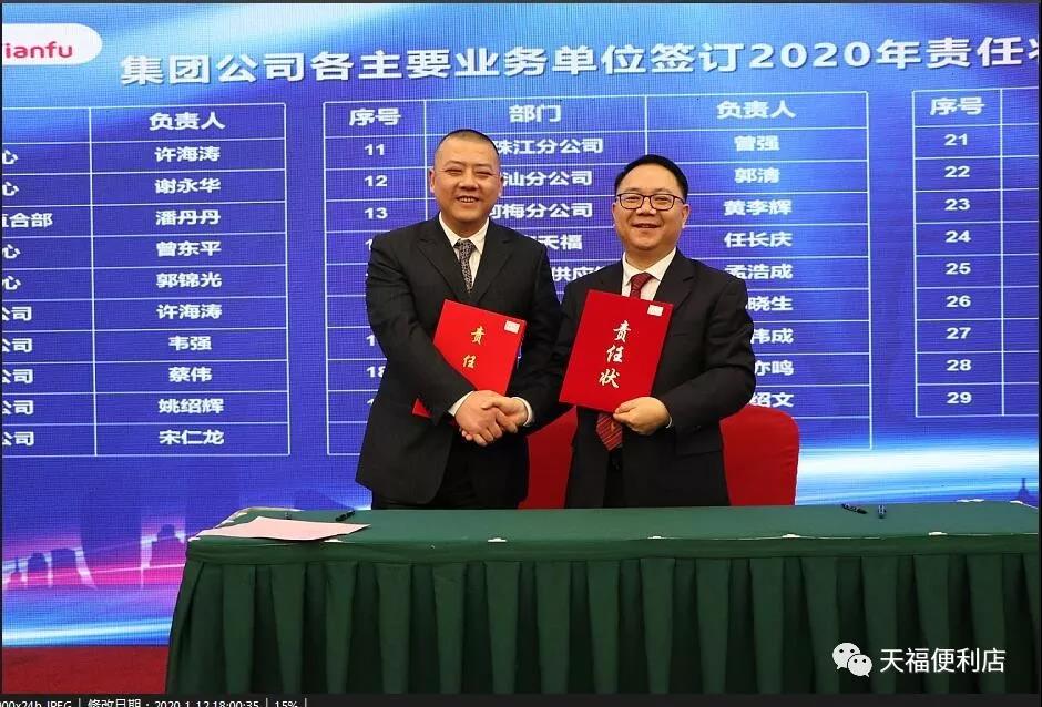 總結會之后,全集團29個業務部門和經營實體的負責人與集團董事長兼總裁歐陽華金簽訂了2020年責任狀。