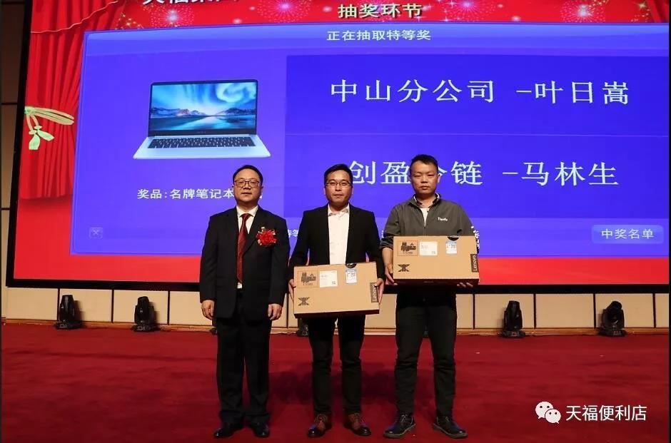隨后千人晚宴和文藝晚會正式拉開帷幕。多才多藝的天福人使出十八般武藝,勁歌熱舞應接不暇。除了精彩節目,豐盛大餐,還有抽出了458份天福會員余額獎、華為手機、筆記本電腦獎,以及產生了從200元到5000元不等的現金獎獲得者400多人。