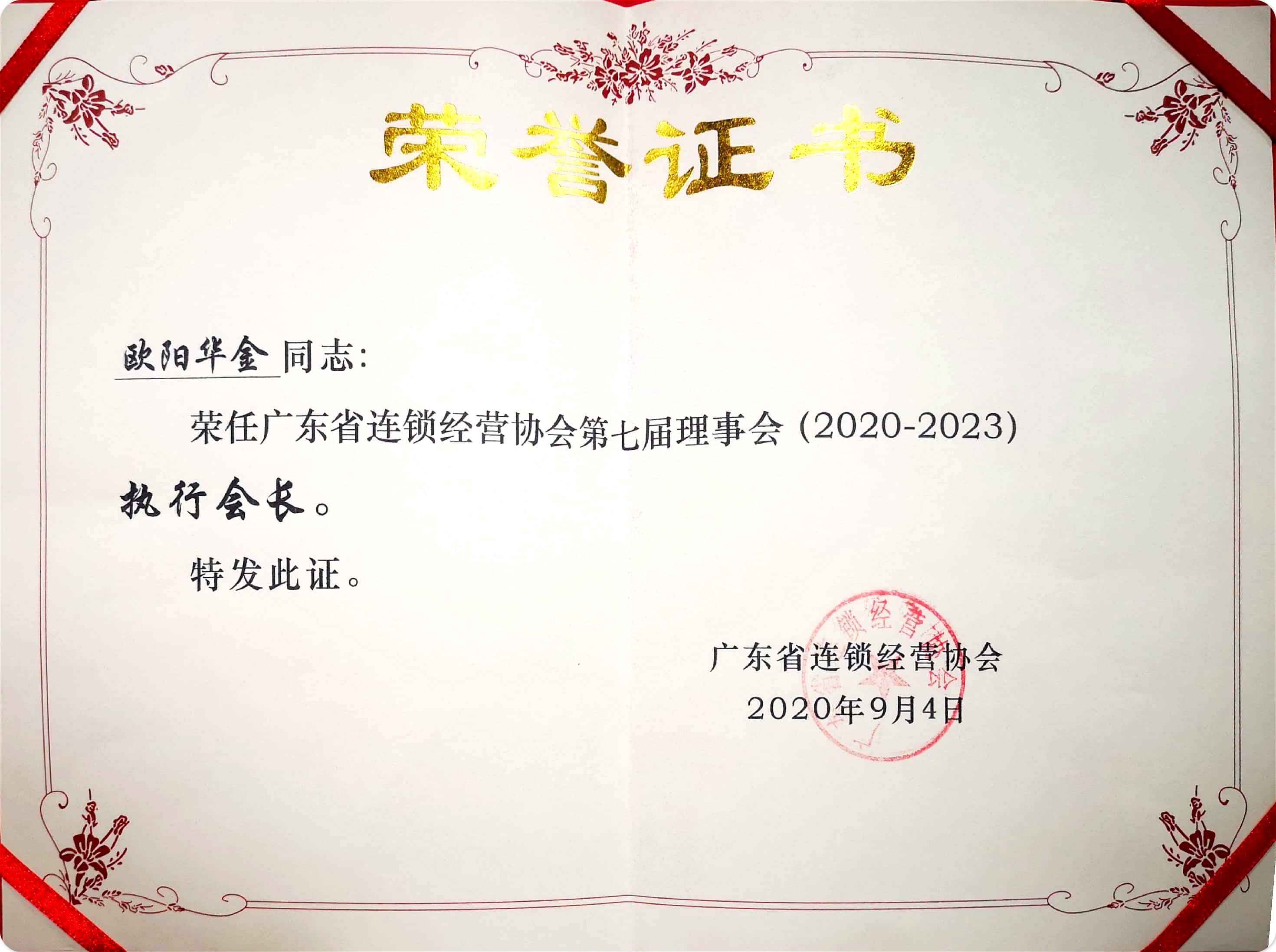 會上,廣東省連鎖經營協會第七屆換屆大會暨第七屆一次會員代表大會圓滿召開。天福集團董事長兼總裁歐陽華金先生繼續當選理事會執行會長。