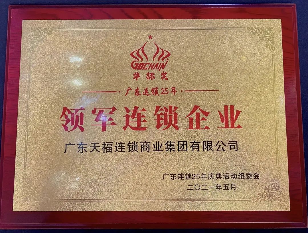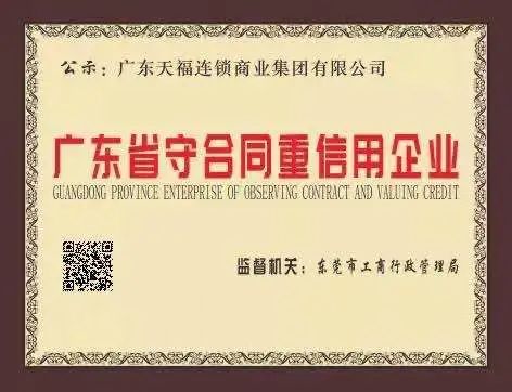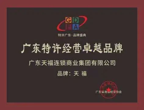 作為廣東連鎖商業品牌中的佼佼者,天福集團自成立以來,相繼獲得"廣東十佳連鎖經營企業"、“廣東十大特許經營品牌"、"廣東連鎖五十強企業“、"廣東誠信示范企業"、"中國便利店加盟品牌人氣獎"、“中國便利店創新獎"、"廣東省守合同重信用企業"、"質量•服務•誠信AAA企業”等榮譽獎項。