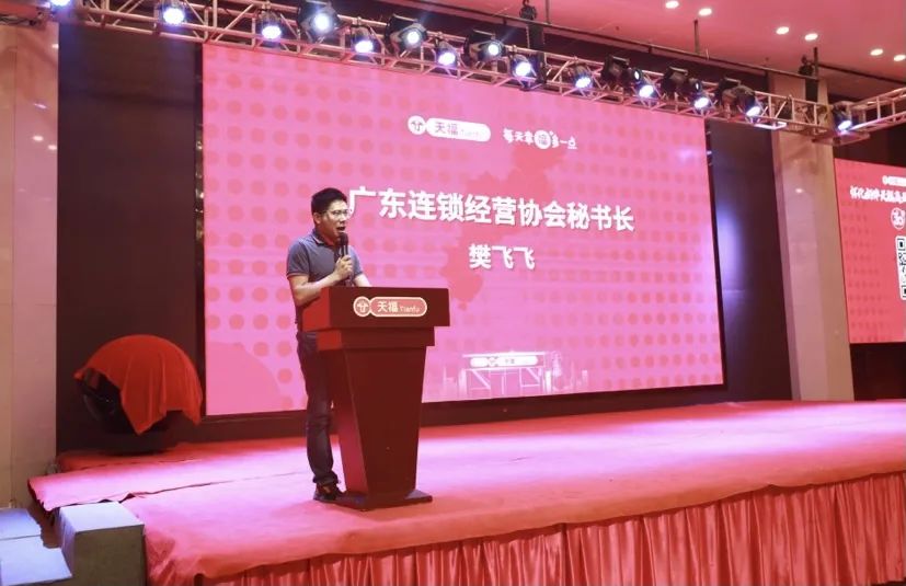 廣東省連鎖經營協會樊飛飛秘書長在發言中代表省協會對本次好伴天福的合作表示祝賀,樊秘書長表示,近年來,隨著社會經濟的可持續發展、城鎮化進程的不斷加速、數字化技術的快速發展,以國內大循環為主體的雙循環發展格局凸顯,行業進入“大者越大,強者恒強”的大發展時期,天福把握機會,加快布局下沉市場,取得發展先機!