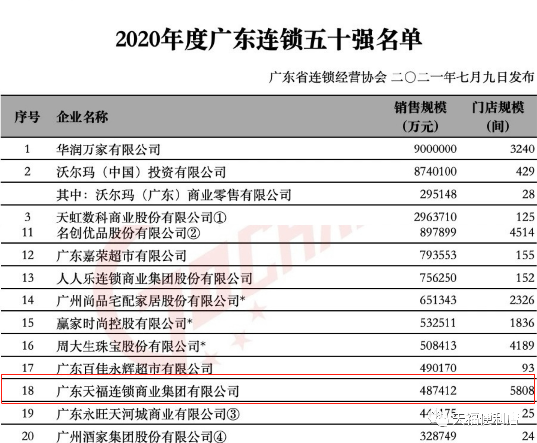 7月9日,廣東省連鎖經營協會重磅發布《2020年度廣東連鎖五十強》榜單,作為廣東本土便利店連鎖品牌,天福憑借深耕廣東便利店行業十七年所積攢的豐富經驗、扎實根基與品牌優勢,再度強勢登榜,名列第十八位。據悉,作為廣東連鎖商業品牌中的佼佼者,天福已連續十二年上榜廣東連鎖五十強。