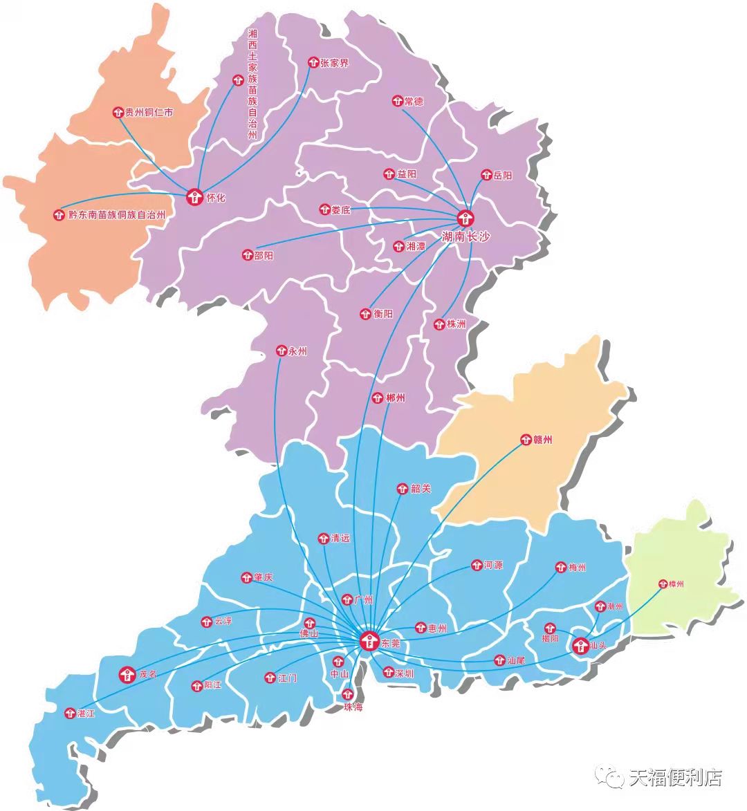 ▲天福區(qū)域分布圖及門店增長(zhǎng)情況