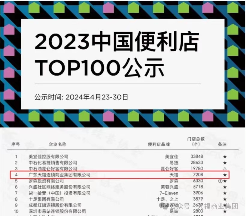 在忙碌且充實(shí)的第二季度,天福集團(tuán)喜訊頻傳。4月23日,中國(guó)連鎖經(jīng)營(yíng)協(xié)會(huì)公布《2023中國(guó)便利店TOP100》榜單。天福集團(tuán)以7208家的門店規(guī)模位居全國(guó)第4。