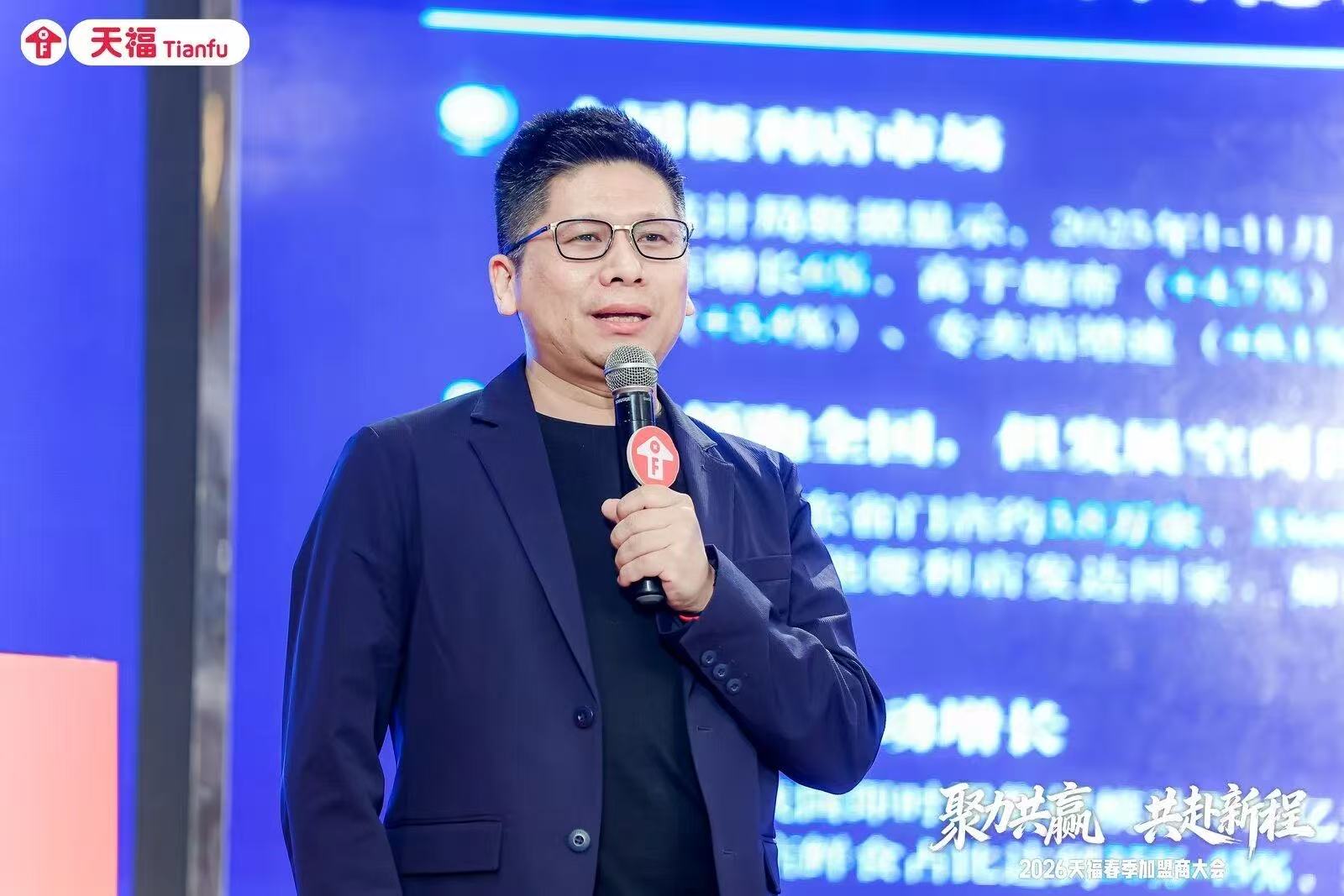 會上,天福集團(tuán)常務(wù)副總裁成世恩先生發(fā)表開幕致辭,向蒞臨現(xiàn)場的各位嘉賓致以熱烈歡迎,并向廣大加盟商致以誠摯謝意,感謝大家與天福同心同德、攜手并進(jìn),以深耕市場的堅(jiān)守與實(shí)干,共同推動品牌發(fā)展。以 “三敬” 凝練天福的發(fā)展信念:敬過往,我們堅(jiān)守初心,無憾耕耘便利店事業(yè);敬當(dāng)下,我們無懼競爭,積極應(yīng)對市場挑戰(zhàn);敬未來,我們聚力同行,共赴嶄新篇章。